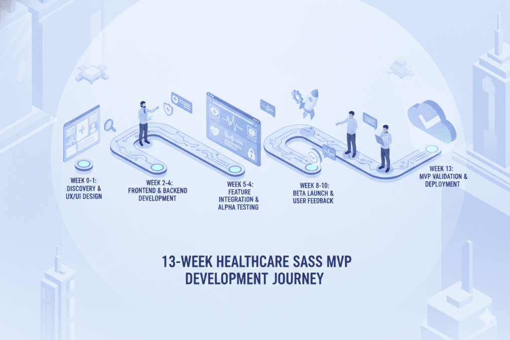 Let’s get tactical. Here’s how to go from concept to functioning healthcare SaaS MVP in 90 days—a timeline we’ve refined with real clients at BkAbhi.